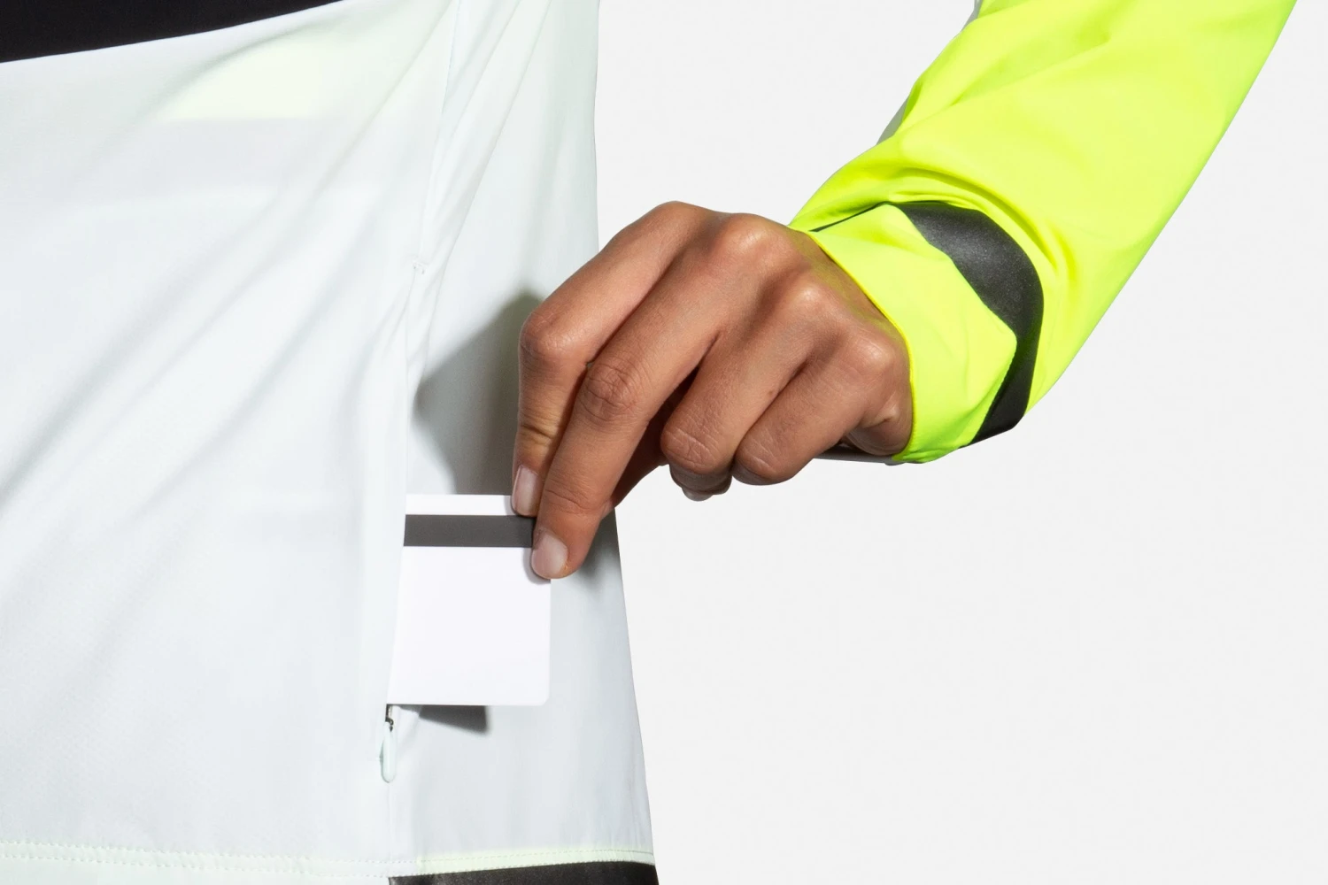 Be safe, seen, and comfortable in the Brooks Carbonite jacket. With 3M™ Scotchlite™ in key areas and neon yellow sleeves, zipper, and Brooks logo you will be seen by cars from up to 600ft away. With wind and water protection and a sweat-wicking liner you will be running in comfort all winter long!