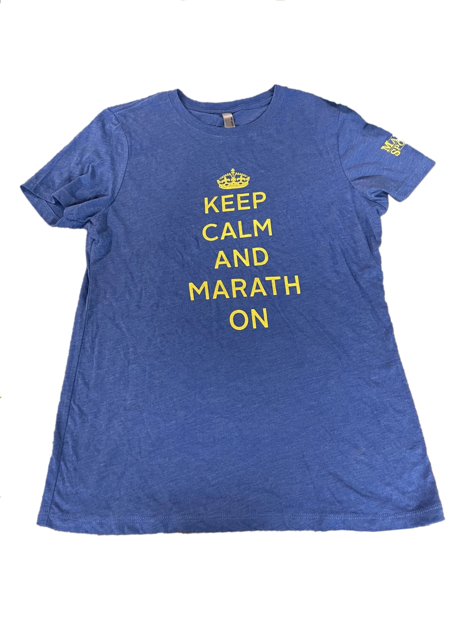 Get ready for your next race with the Keep Calm and Marath-On T-Shirt. Made from cotton you will be comfortable and stylish in this new tee!