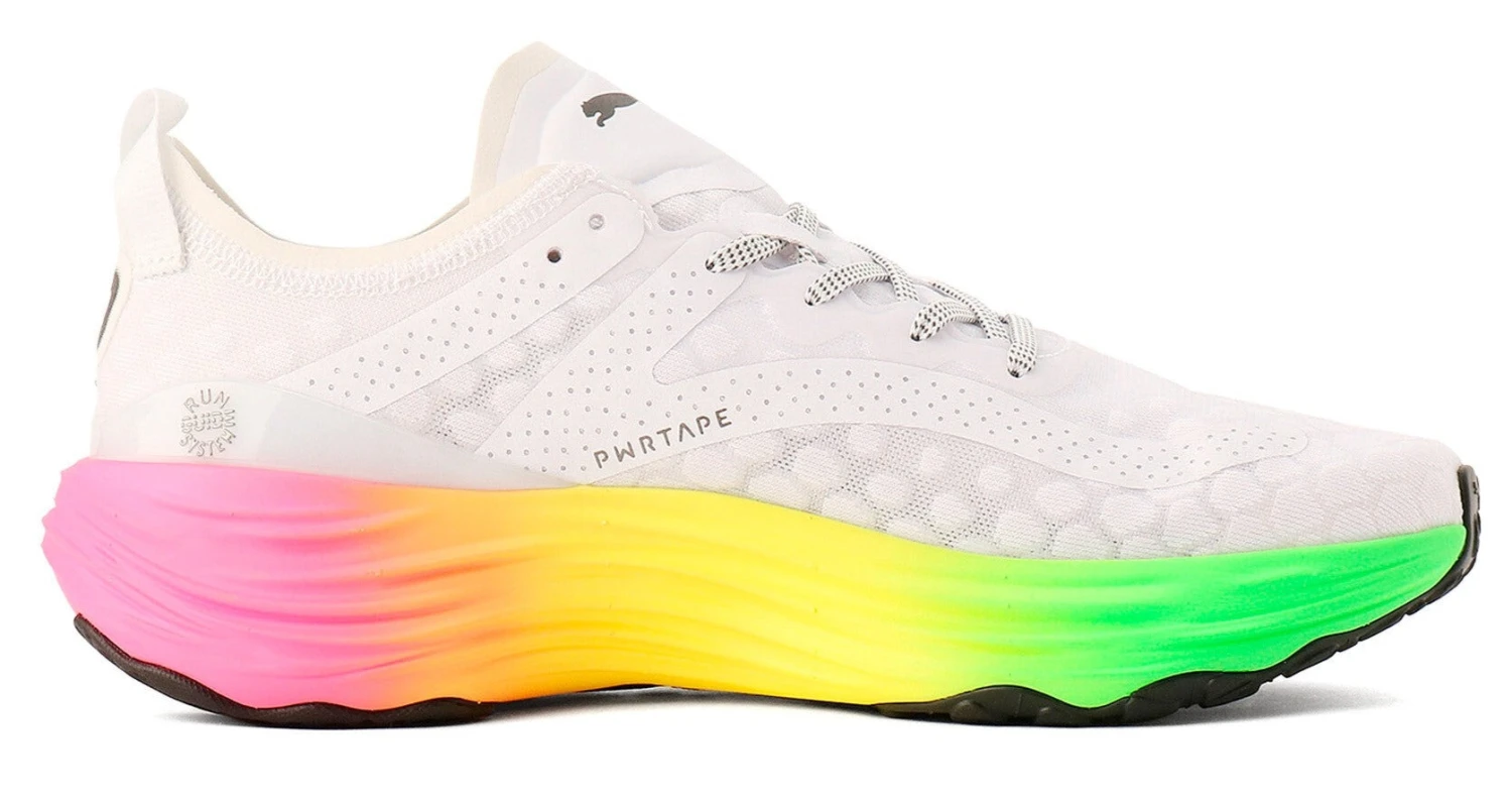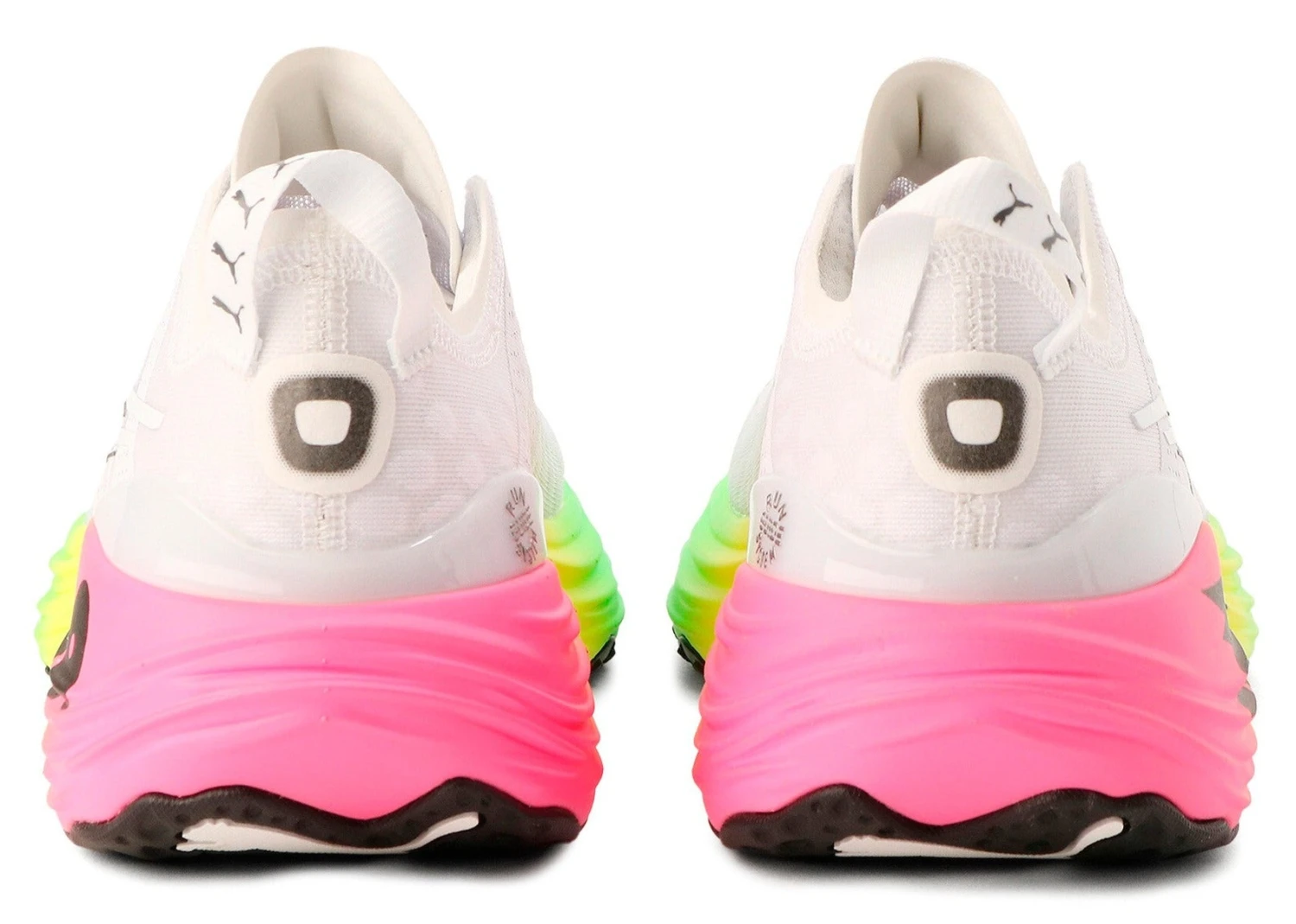 Experience support and guidance in a new wayΒ with the ForeverRun Nitro from Puma. The updated NITRO midsole has been developed with two different densities, a softer core with a firmer rim. This combination of foam with the addition of an asymmetrical heel counter assists in keeping the foot in place, offering a more supportive ride. This support continues through the outsole with a wider medial rubber segment to help stabilize late-stage pronation.