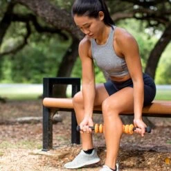The STK Contour is an innovative handheld foam roller featuring a flexible hourglass design and comfortable foam surface. The unique construction is designed to wrap around and compress muscles while rolling, to relieve muscle soreness and speed up recovery. Foam spindles individually roll across muscles to increase circulation and improve muscle mobility. The STK Contour massage stick can be used while seated or standing, to target both lower and upper body muscles such as the calf, hamstring, quadriceps, hips, and back. All TriggerPoint handheld massage rollers provide portable, on-the-go relief from muscular aches and pains